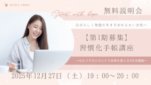 「何から始めてよいかわからない方」や「自信を持てず一歩踏み出せない方」にとって、絵美さんまさに心強い伴走となるものだと感じています。的確で本質を突くアドバイスと、温かく寄り添うサポート。 その両方を兼ね備えているのが、絵美先生の大きな魅力です。